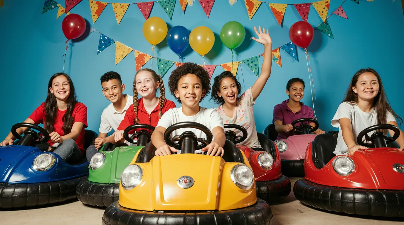 Includes a 5 vs 5 bumper cars set with arena, any bouncy castle, any food machine, and any game of your choice